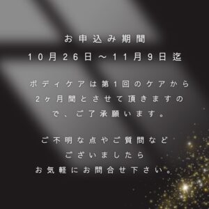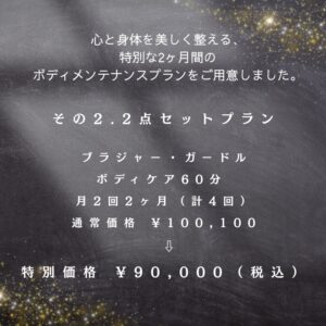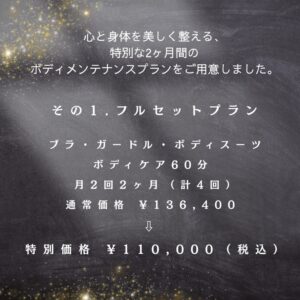 期間中は特別は2ヶ月間のボディメンテナンスプランをご用意しております。